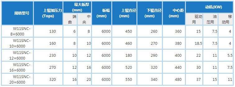 该机上辊可以垂直升降又可以水平移动,垂直升降为液压传动,通过液压缸内的液压油作用活塞杆而获得水平移动通过涡轮蜗杆箱、涡轮蜗杆、丝杆丝母机构传递扭矩,带动上辊的水平移动,下辊只作旋转运动为卷板提供扭矩,下辊下部设有托辊并可调节,上辊呈鼓形状,提高制品的直线度。适用于挂车各种截面形状罐体的卷制。