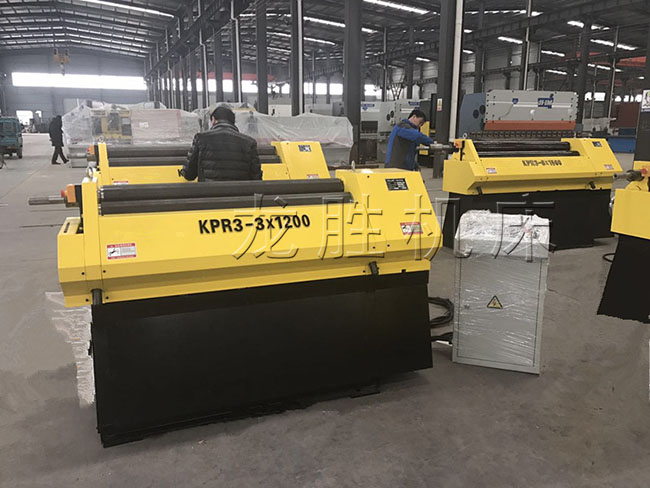 该机结构形式为三辊非对称式,上辊为主传动,下辊垂直升降运动,以便夹紧板材,并通过下辊齿轮与上辊齿轮啮合,同时作为主传动;边辊作倾升降运动,具有预弯和卷圆双重功能。结构紧凑,操作维修方便。