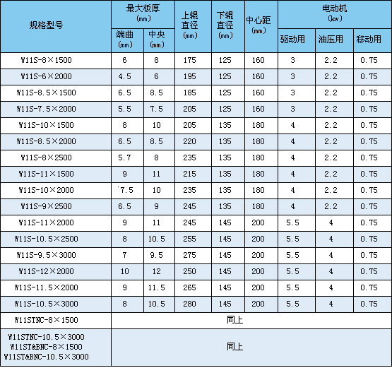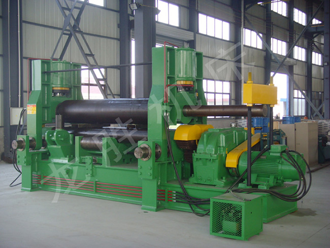 该机属于液压型三辊卷板机,用于常温状态下将各种容器用碳钢、低合金钢一次上料后不需调头即完成板材端部预弯、卷圆和矫圆等工序。