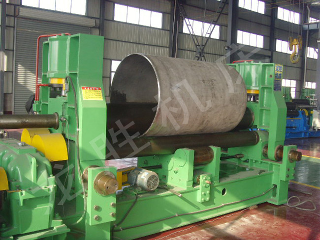 该机属于液压型三辊卷板机,用于常温状态下将各种容器用碳钢、低合金钢一次上料后不需调头即完成板材端部预弯、卷圆和矫圆等工序。