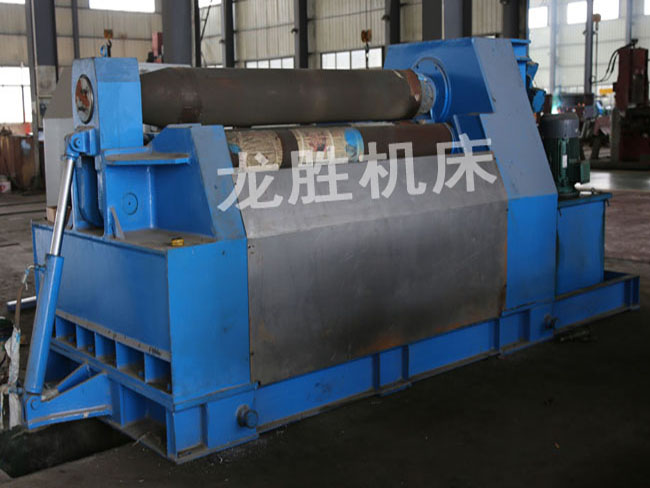 水平下调式卷板机,用于完成锅炉压力容器用圆筒体,锥体的卷制、校圆。用于大型厚壁承压设备、化工压力容器等产品的筒体卷制和焊后校圆。 上辊可以垂直升降,两下辊可以分别水平移动。